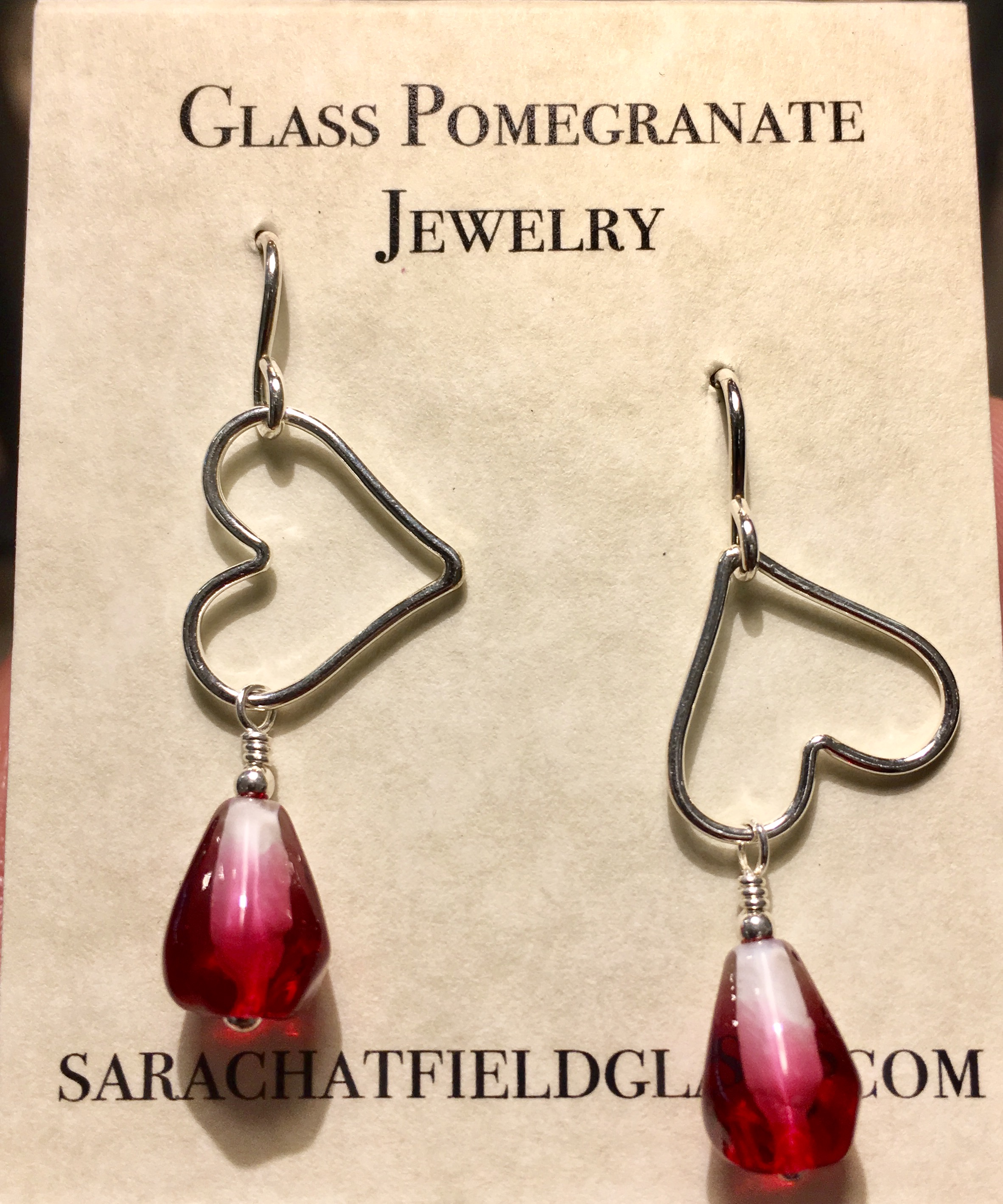 Everyone needs a pair of pomegranate earrings! Hand-sculpted glass beads that look so much like real pomegranate seeds, someone might try to nibble them off your ear (which could be fun, as long as they don't crunch them). Earwires and other metal findings are all sterling silver.