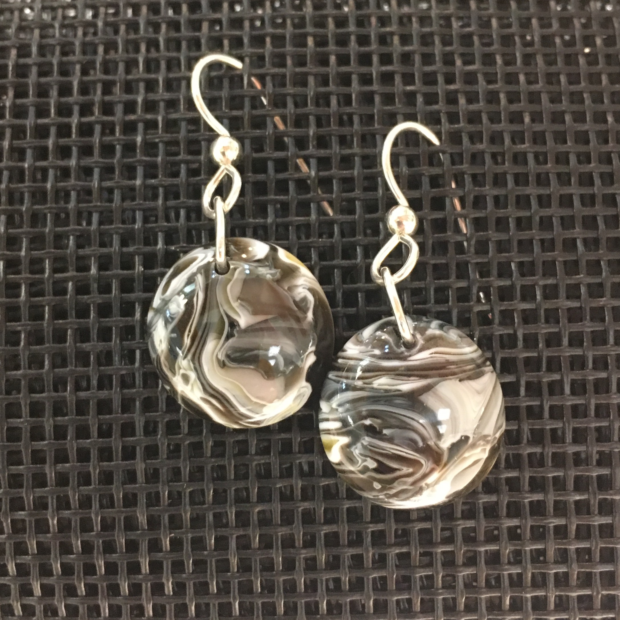Black and white swirls match everything! Earwires and all other metal findings are sterling silver.
