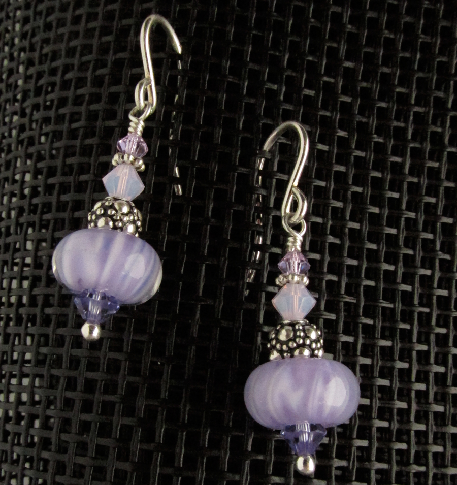Hazy swirls of purple in all its shades and tints. If you love purple, also check out the Lunar Purple collection. Earwires and all other metal findings are sterling silver.