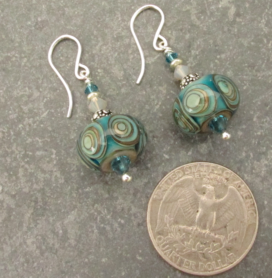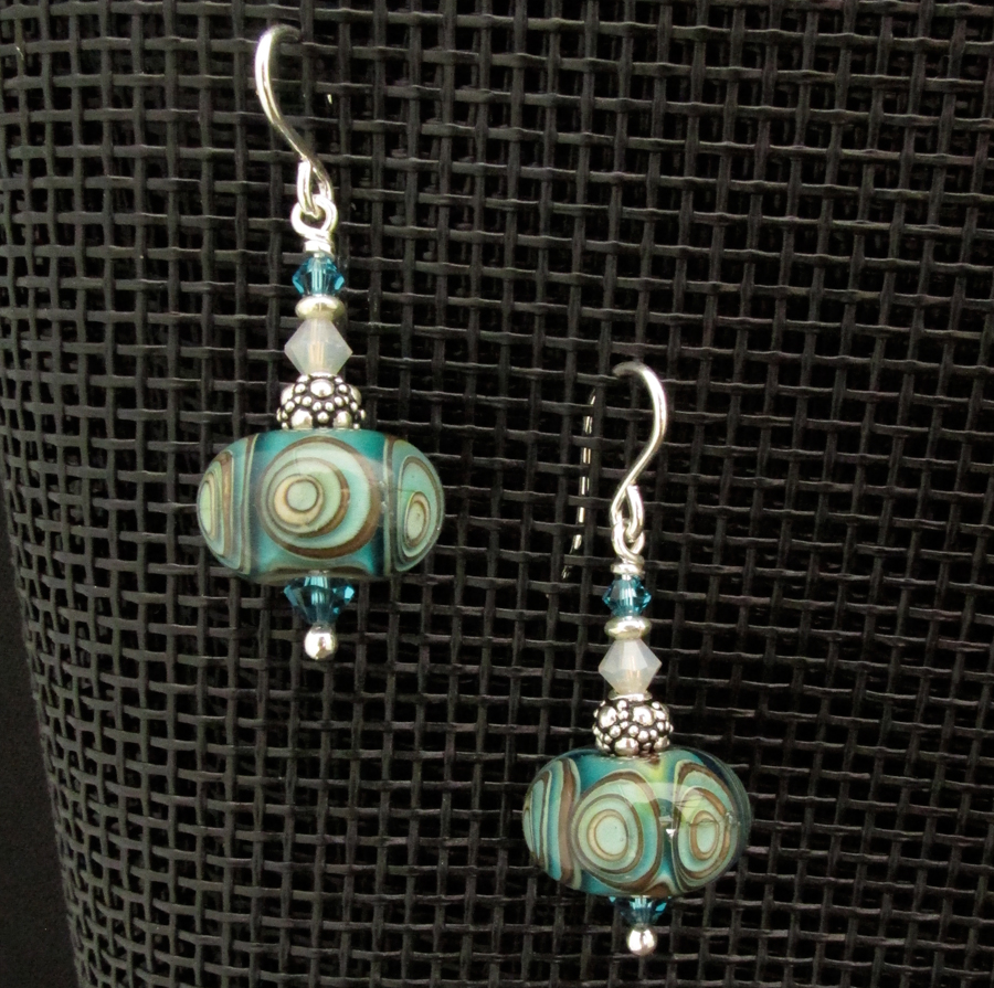 Transparent aqua layered with mottled brown and cased in clear. Crazy depth! Earwires and all other metal findings are sterling silver.