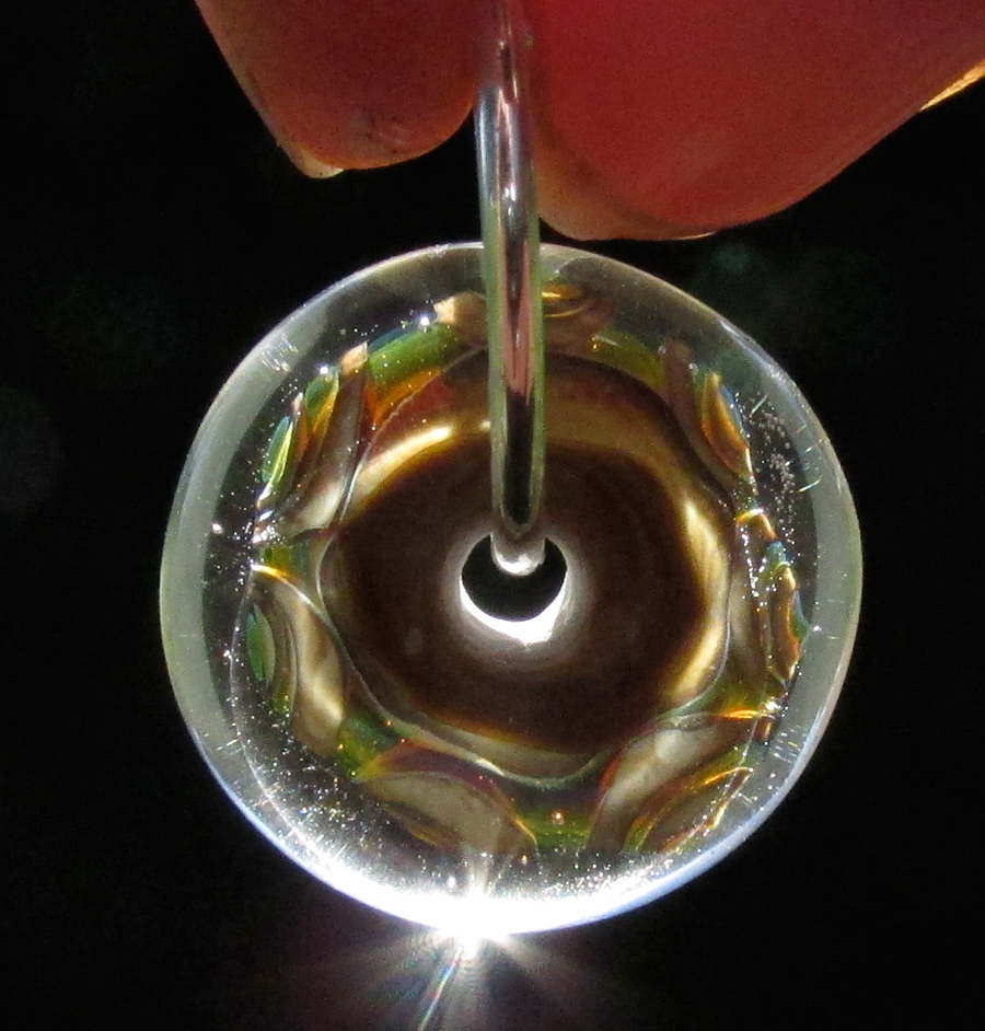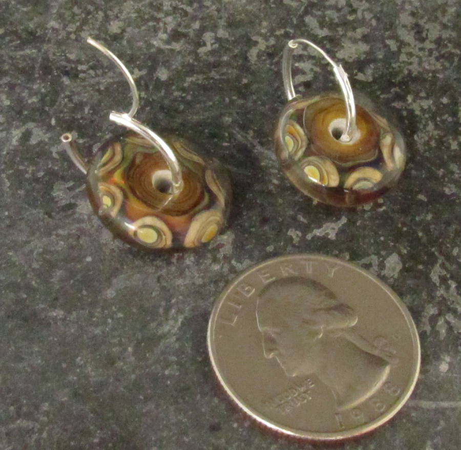 Amber, olive, pink, and purple haze layered with mottled brown and cased in clear. Crazy depth! Earwires are endless sterling silver hoops that hinge to open and secure into themselves. After putting them through your ear, put the wire end inside the tube opening at the back.