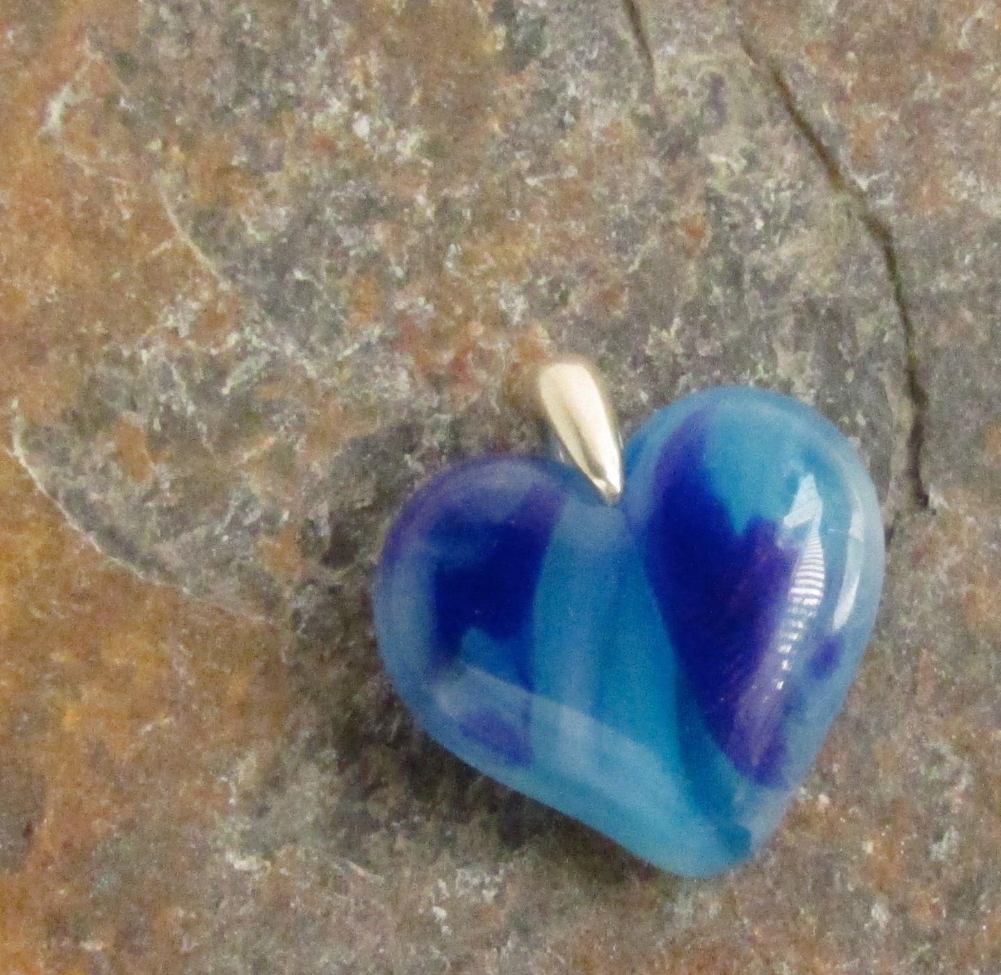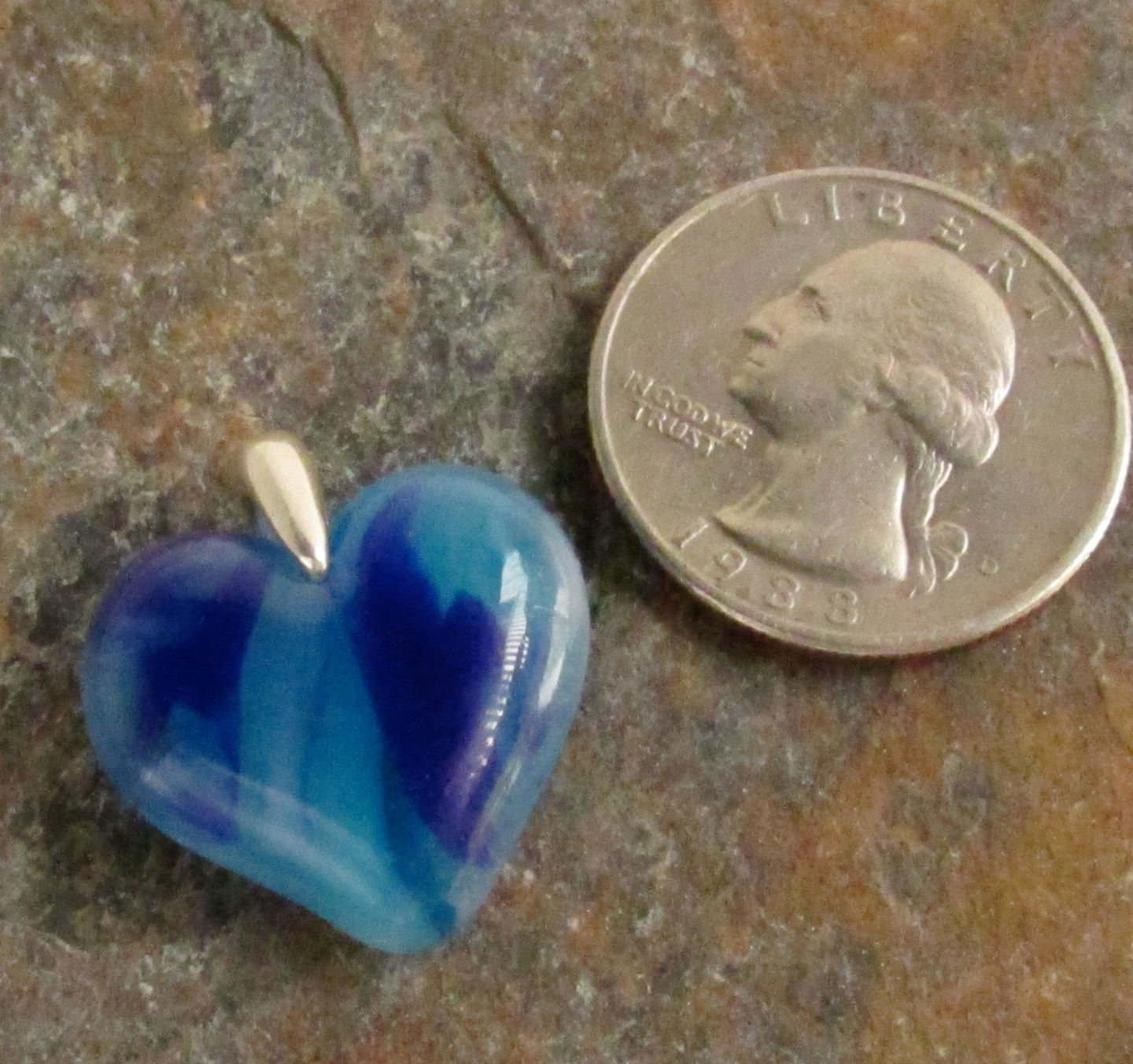 A blue spectrum of glass swirls in the depths, reminiscent of glacier ice, sometimes with a sparkle of silt. All pendants come with a black waxed cotton cord, but check out the silk ribbons for another fun way to wear it. Bail is sterling silver.