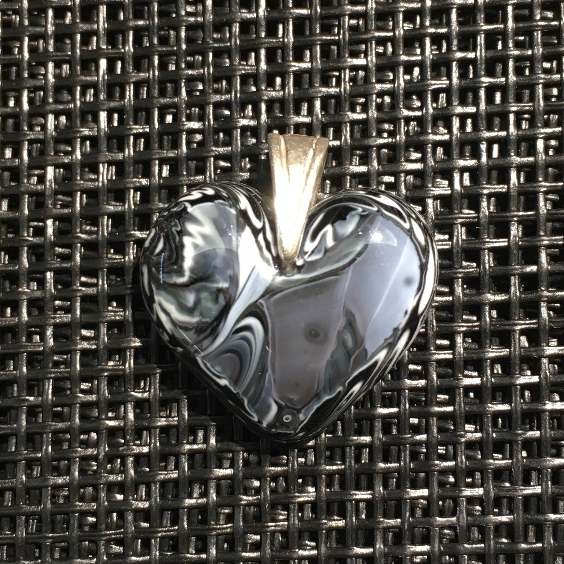 Black and White Glass Heart Pendant
